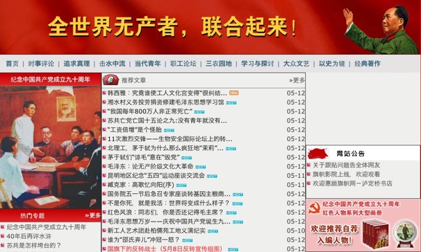 “The Web sites Maoflag.net, Jinbushe.org (or “Progress Society”) and wyzxsx.com, the Internet home of Utopia, a neo-Maoist group, were among those closed to Internet users in China. All three have been outspoken in their support of the popular and charismatic former Chongqing Party chief Bo Xilai, who was fired March 15. They were also cheerleaders for Bo’s “Chongqing model” of development, which emphasized a strong state-centered economy and social welfare policies to address income inequality.